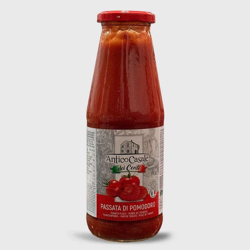صلصة طماطم إيطالية أصلية، مصنوعة من طماطم ناضجة ومختارة بعناية—ناعمة وغنية بالنكهة، مثالية للصلصات، الشوربات، اليخنات، وإضافة الطعم الإيطالي الأصيل لأطباقك.
