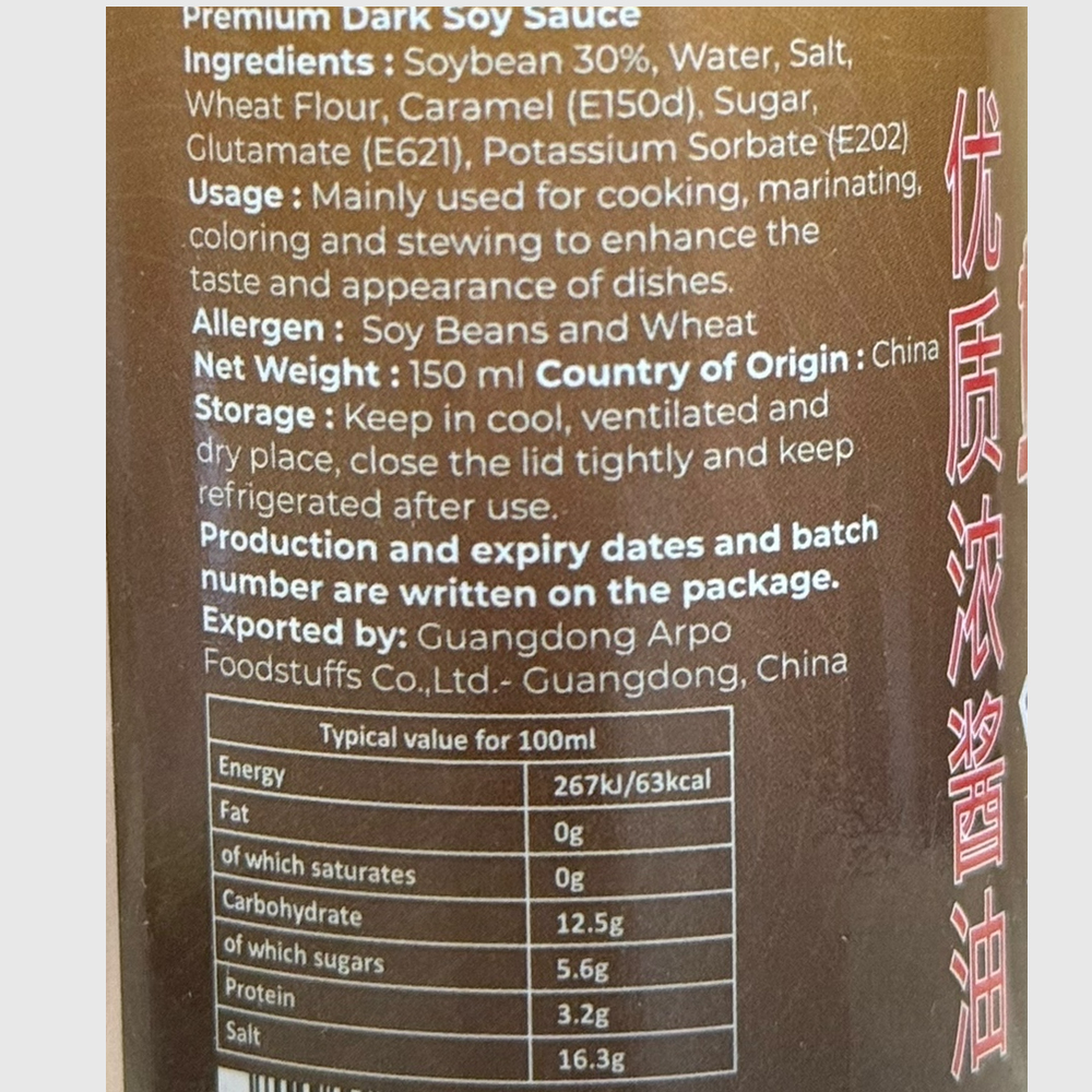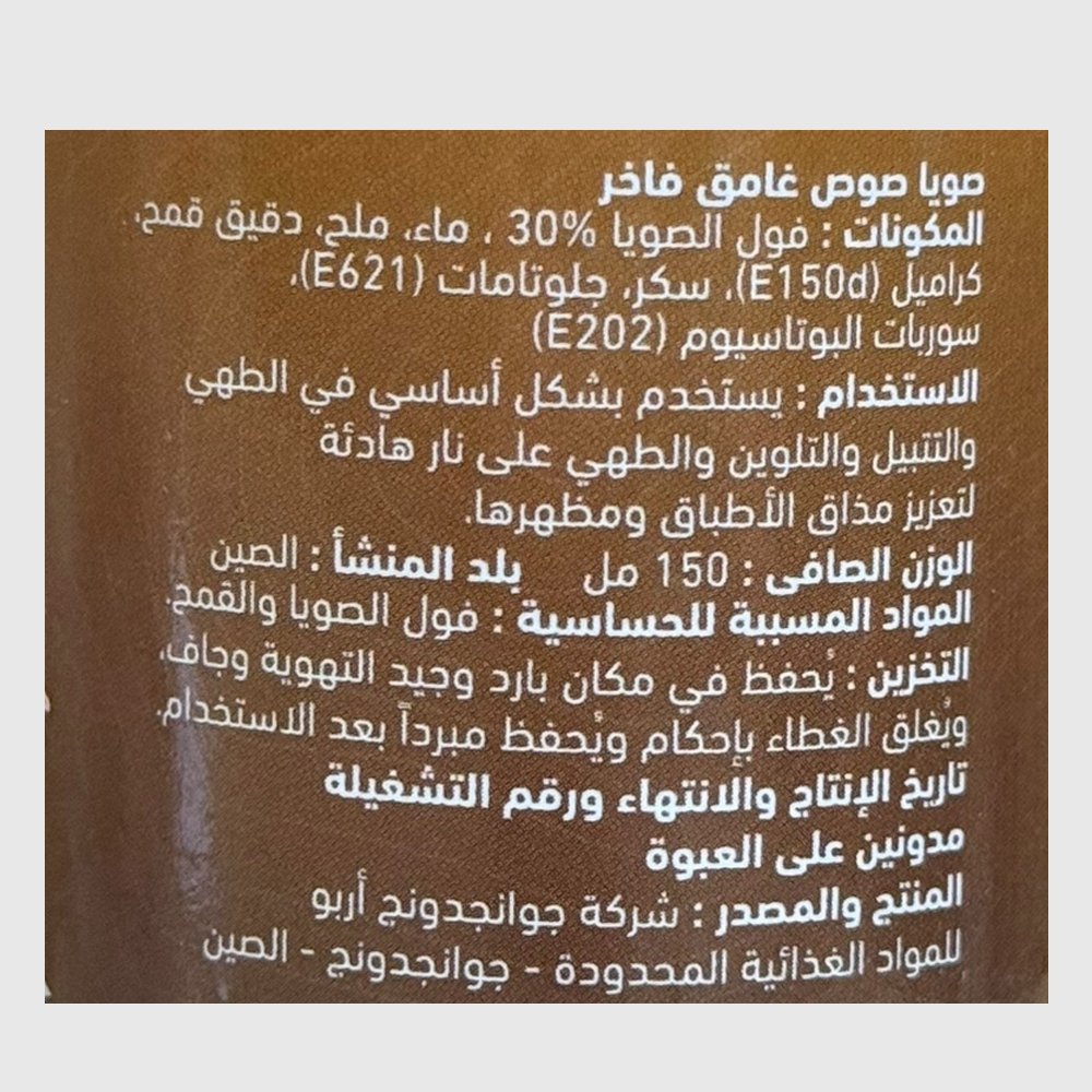 صلصة صويا داكنة غنية وقوية تضيف لونًا عميقًا ونكهة أومامي جريئة – مثالية لتحسين أطباق القلي السريع والتتبيلات والطبخ اليومي.
