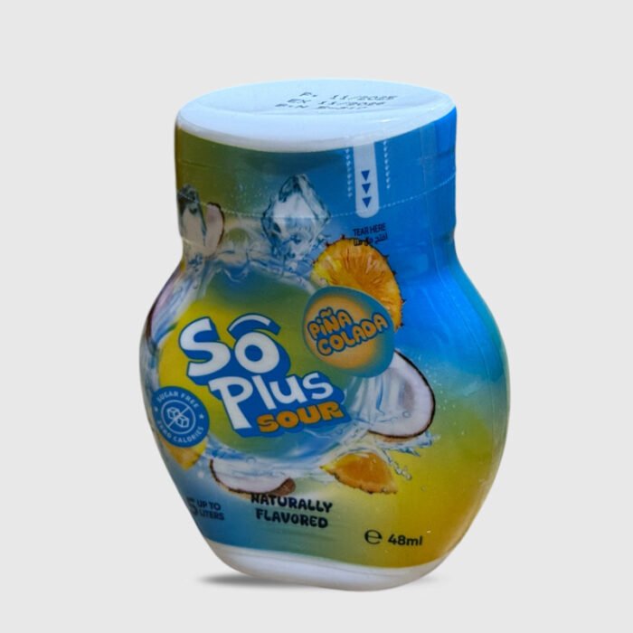 So Plus Pina Colada 48 ml, a liquid water enhancer with a tangy tropical flavor combining juicy pineapple and creamy coconut, sugar‑free and calorie‑free.