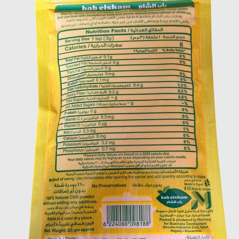 Add bold heat and rich flavor to your dishes with Bab Elsham Chili Powder.
