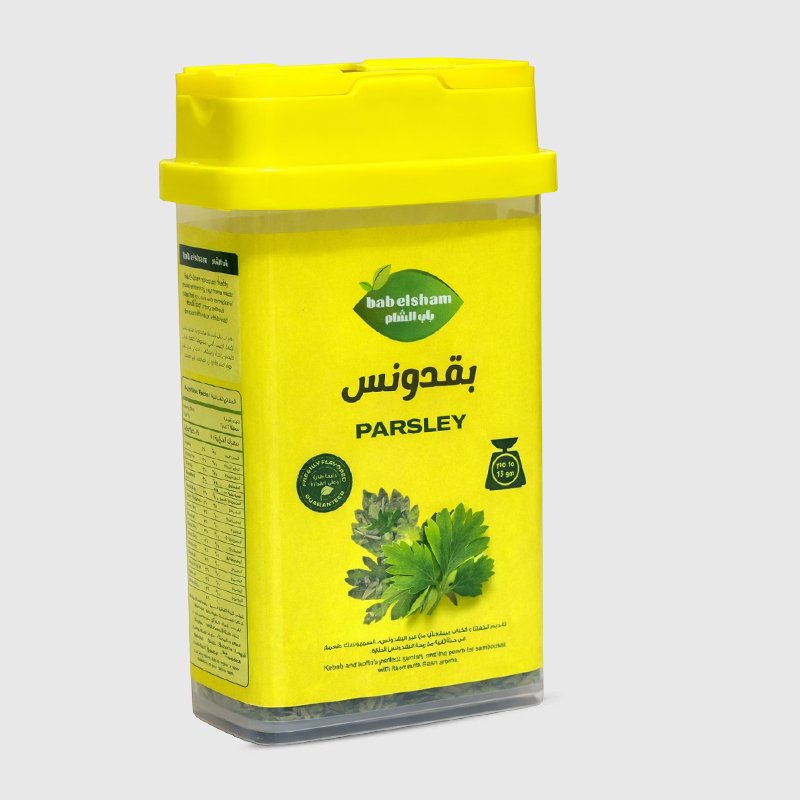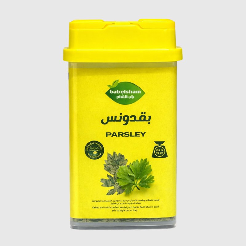 Bab Elsham Parsley – 15 g is dried parsley flakes with a fresh, aromatic herb flavor, ideal for seasoning soups, salads, sauces, and Mediterranean dishes.