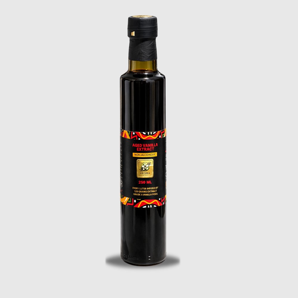 Premium aged vanilla extract with a deep, rich aroma and smooth flavor. Perfect for baking, desserts, beverages, and adding authentic vanilla taste to your recipes.