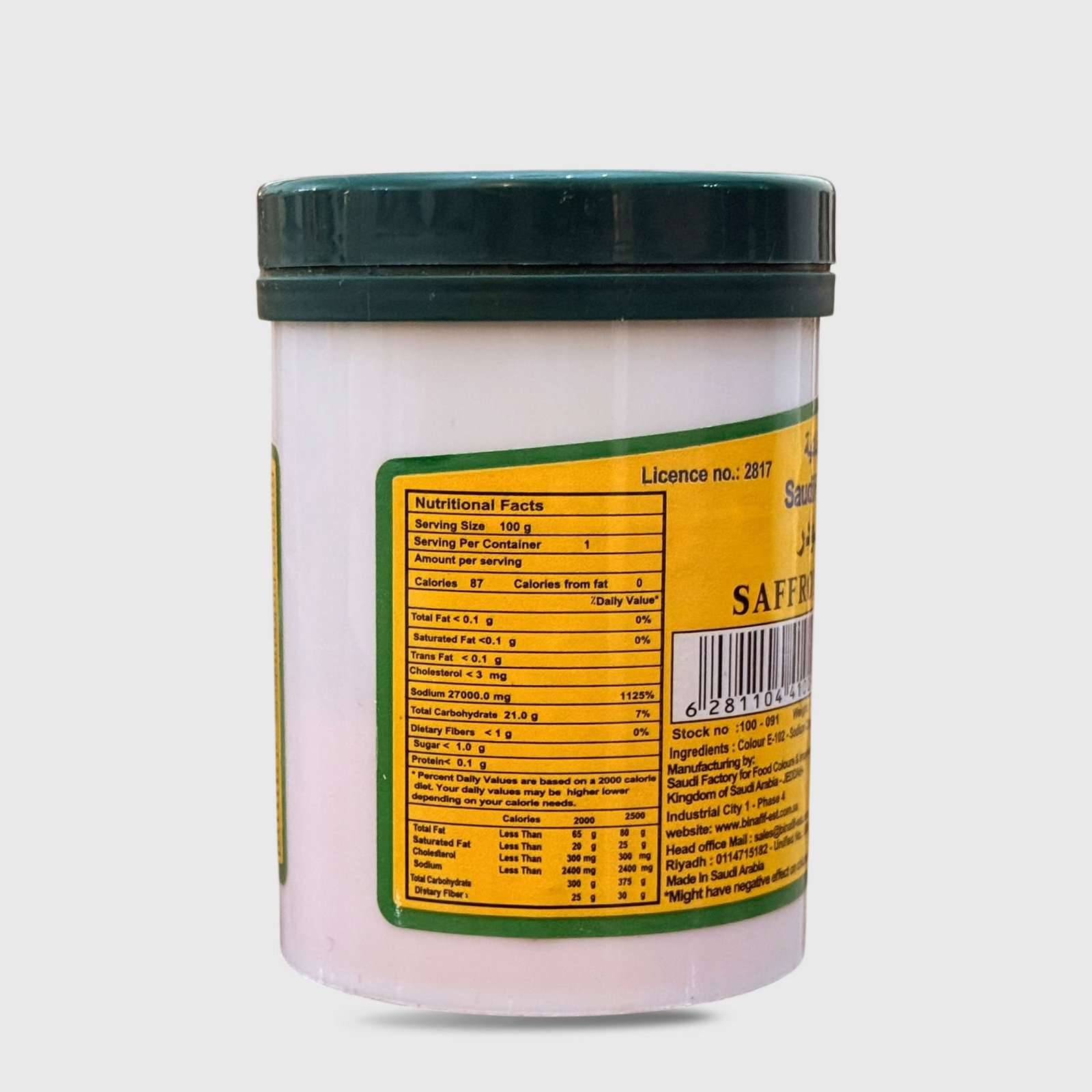 Saffron Yellow Food Color Powder 100g is a concentrated coloring powder that adds a rich golden-yellow hue to foods like rice, desserts, and baked goods, with a neutral taste and easy-to-mix texture.